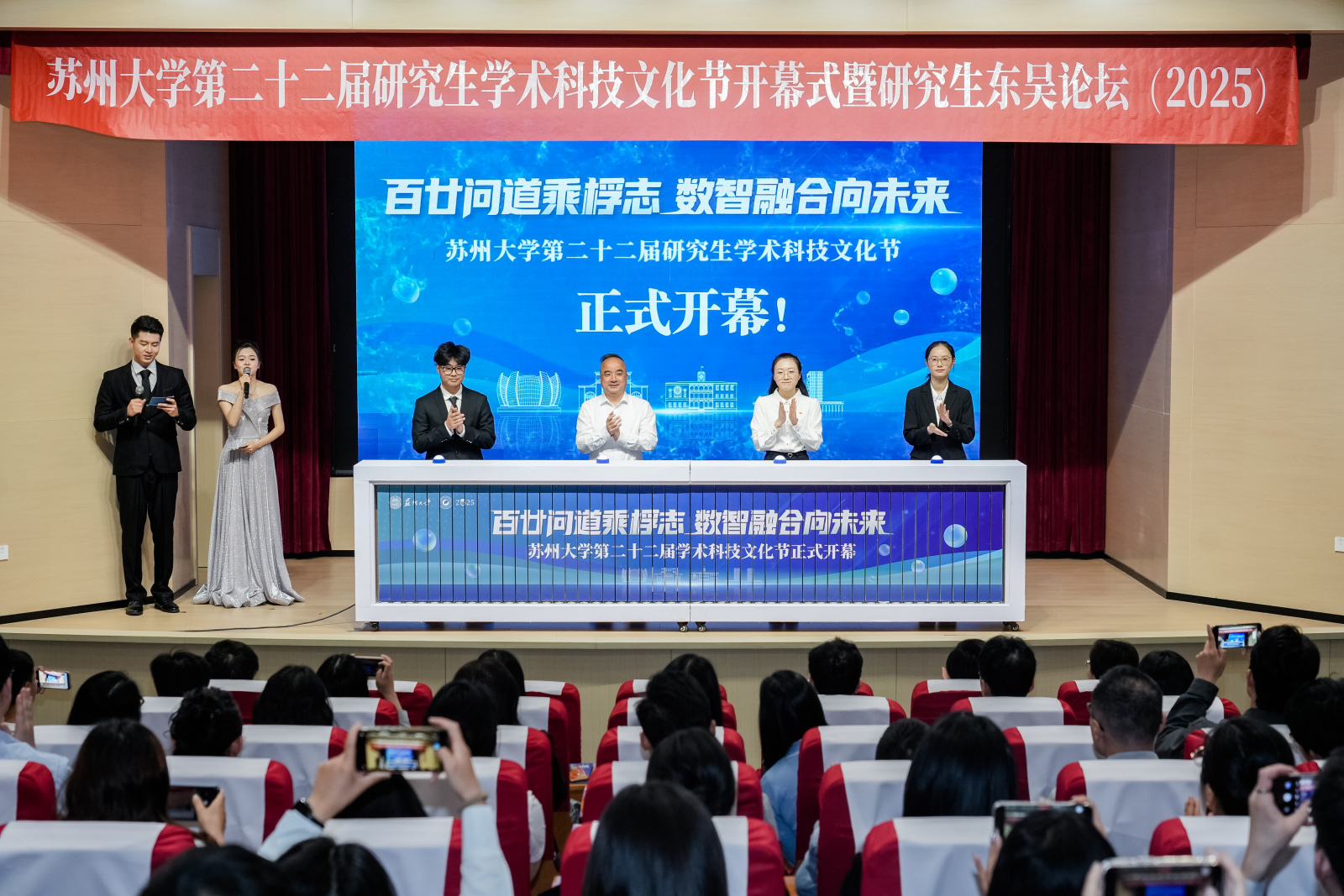 5月13日,蘇州大學第二十二屆研究生學術科技文化節開幕式暨研究生東吳論壇(2025)在天賜莊校區紅樓學術報告廳舉辦。本屆研究生學術科技文化節以“百廿問道乘桴志,數智融合向未來”為主題。校黨委常委、副校長查佐明出席活動,省學生聯合會駐會執行主席,兄弟高校研究生會代表,學校相關職能部門負責人,全體研究生輔導員,各基層研究生培養單位研究生代表等參加活動。